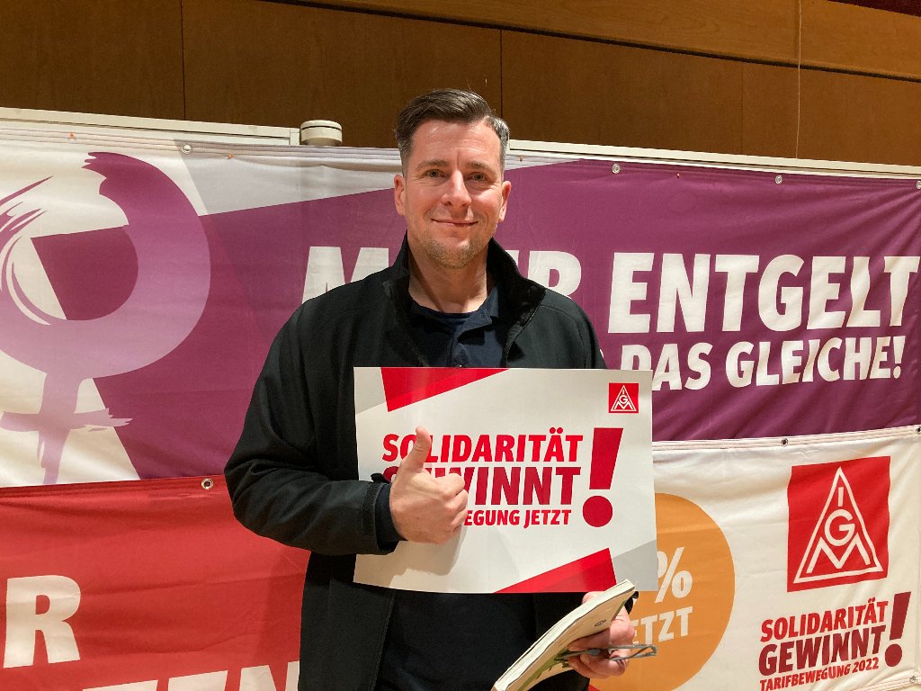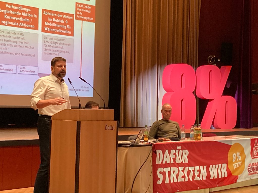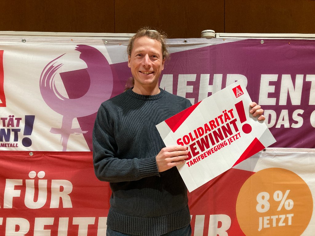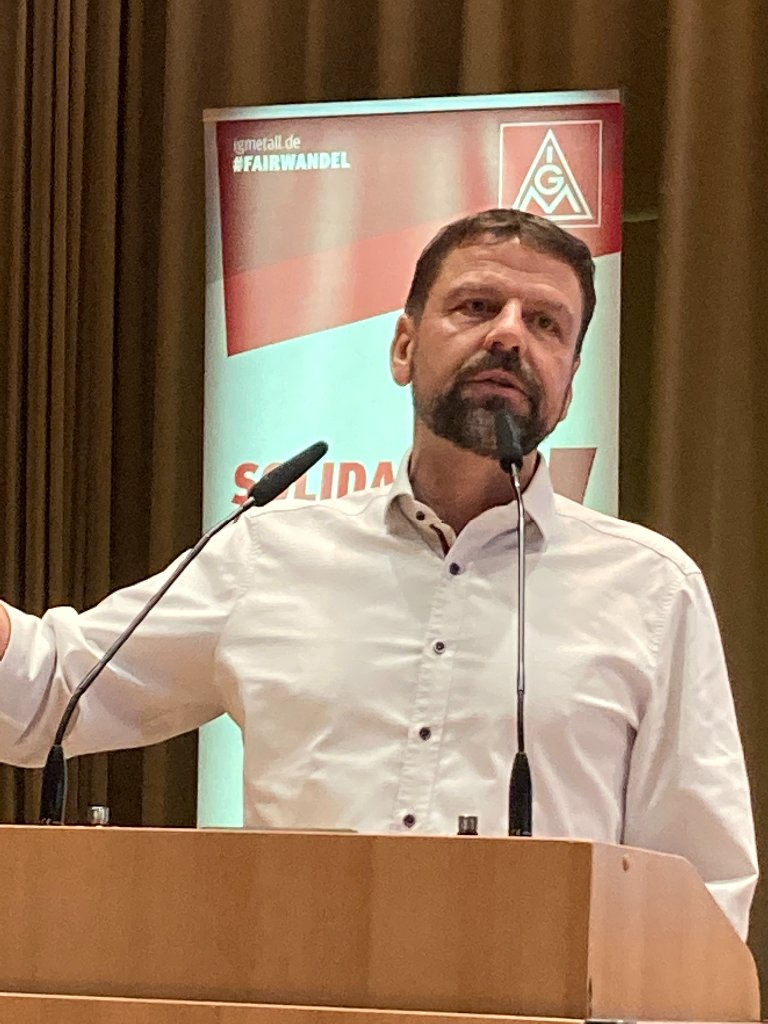 Michael Unser, Erster Bevollmächtigter der IG Metall Heilbronn-Neckarsulm, stieg in die Veranstaltung ein, indem er den aktuellen Stand der Tarifrunde darstellte und an die gesellschaftliche Verantwortung der Arbeitgeber appellierte.