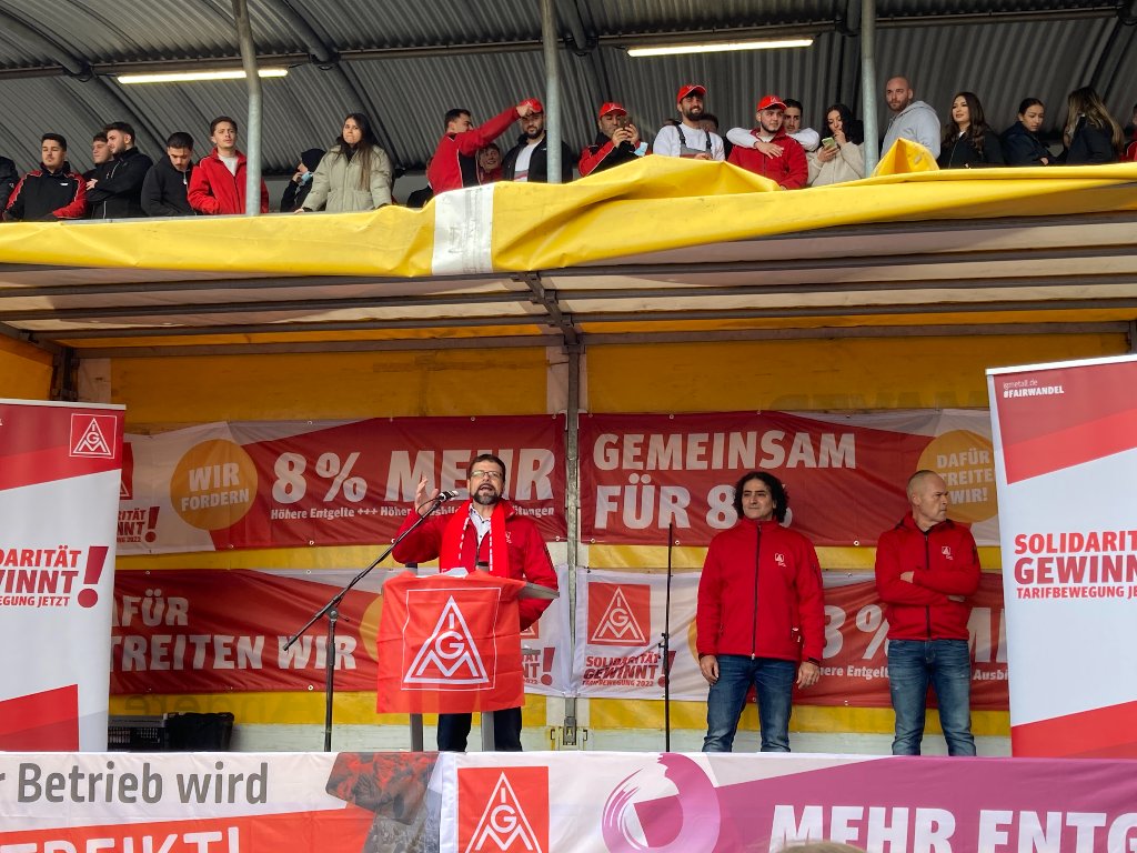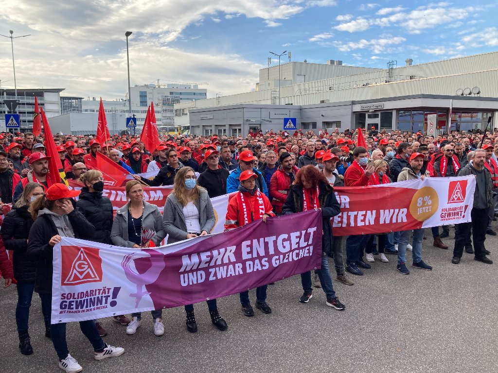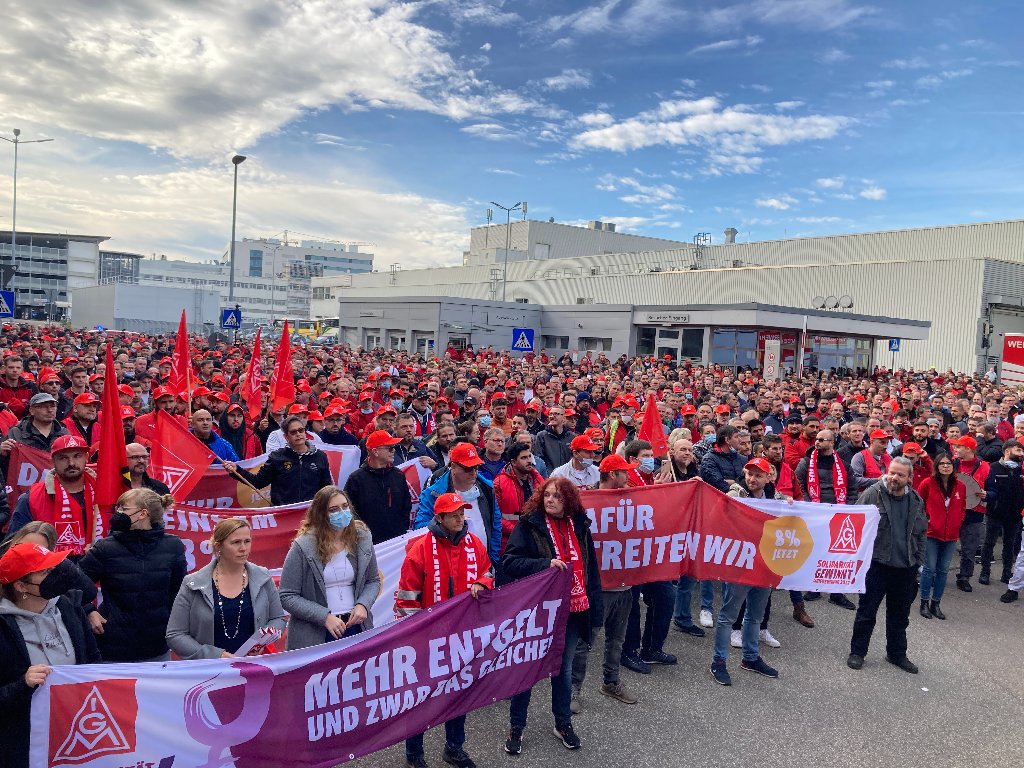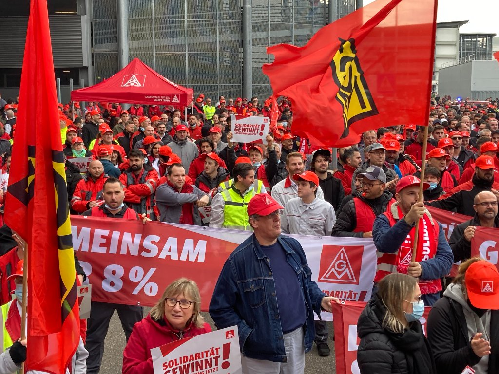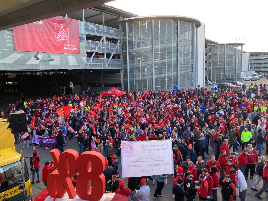 Neckarsulm. Die IG Metall Geschäftsstelle Heilbronn-Neckarsulm erhöht den Druck mit Warnstreiks in der Tarifrunde der Metall- und Elektroindustrie. Zur Durchsetzung der Forderung in Höhe von 8 Prozent, wurden heute