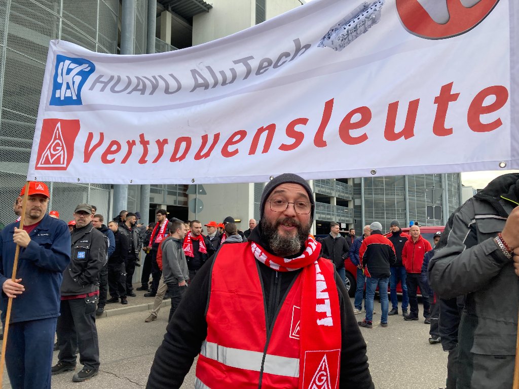 "Heute im Laufe des Tages, findet die vierte Verhandlung statt. Und legen die Arbeitgeber jetzt nicht ein ordentliches Angebot auf den Tisch, sind wir auch für weitere Warnstreiks bis hin zum Streik bereit!"