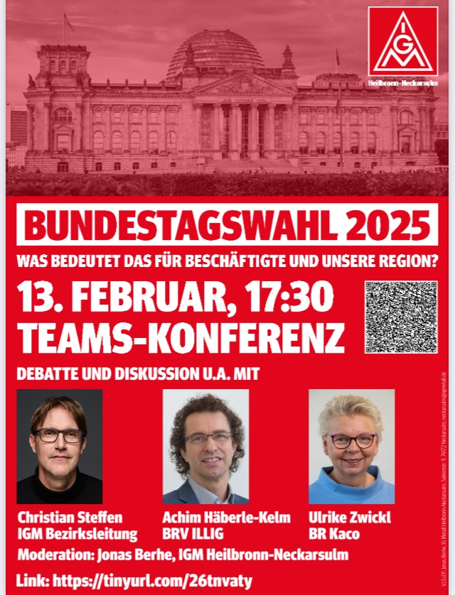 Herzliche Einladung zum Online-Talk der IG Metall Heilbronn-Neckarsulm am 13. Februar um 17:30 Uhr!