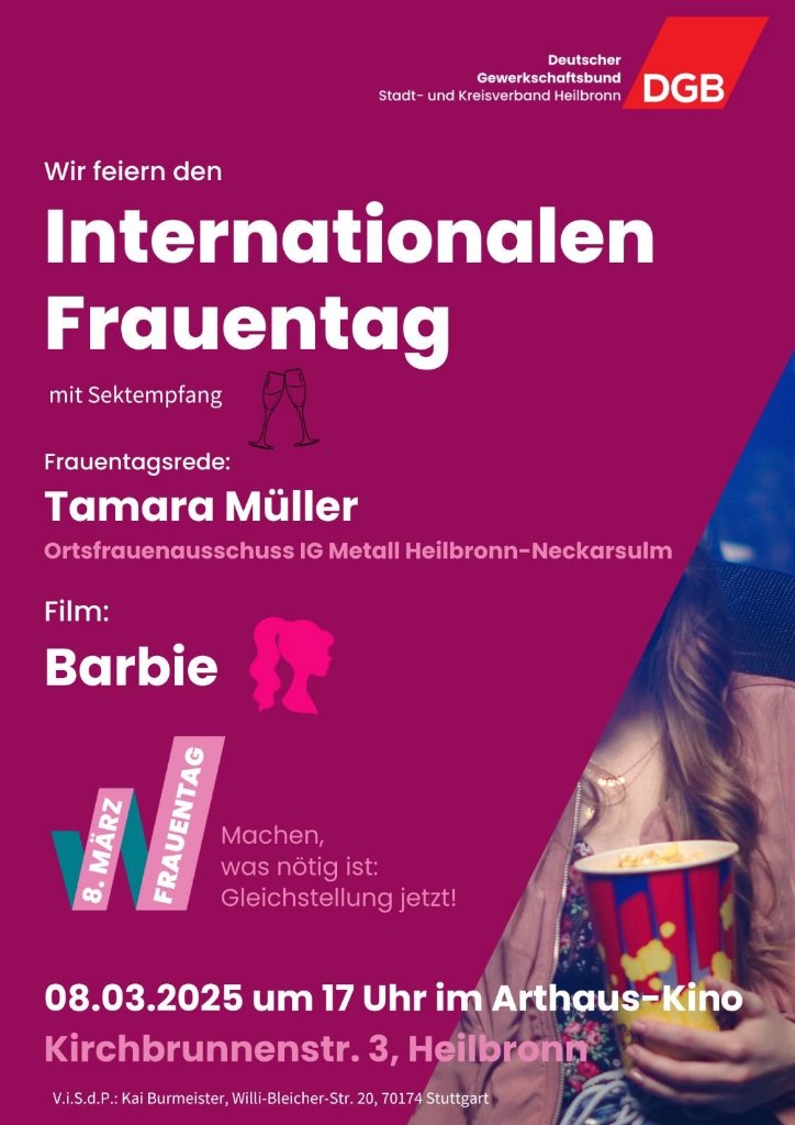 unter dem Motto: MACHEN, WAS NÖTIG IST: GLEICHSTELLUNG JETZT! lädt der DGB Stadt- und Kreisverband Heilbronn zu einer besonderen Kinovorstellung am 08.03.2025 um 17:00 Uhr im Arthaus-Kino Heilbronn ein.
